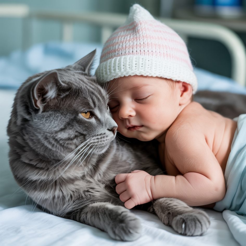 Медсестра спробувала зігнати пухнастого з ліжечка, але малюк вчепився в кота всіма своїми ручками, і дико забурчав, коли їх спробували розлучити. Все відділення бігало дивитися на цю картину, і навіть суворий завідувач, страшно лаючись і обіцяючи всіх звільнити, підійшов і погладив сірого “батька”.