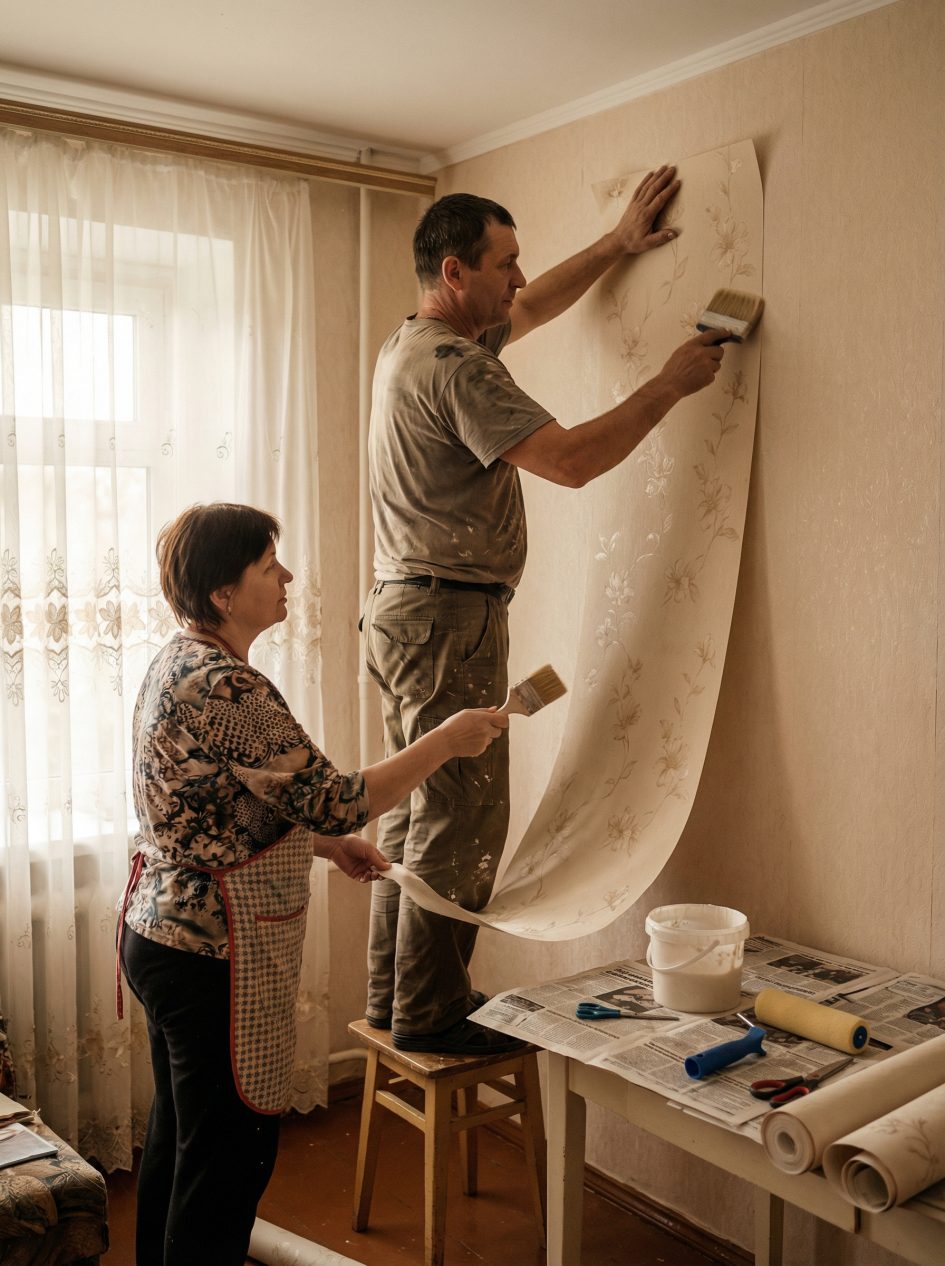 Наступного дня Віктор з Оксаною поїхали в будівельний магазин, придбали гарні шпалери, які їм дуже сподобалися і всіляке приладдя для роботи.