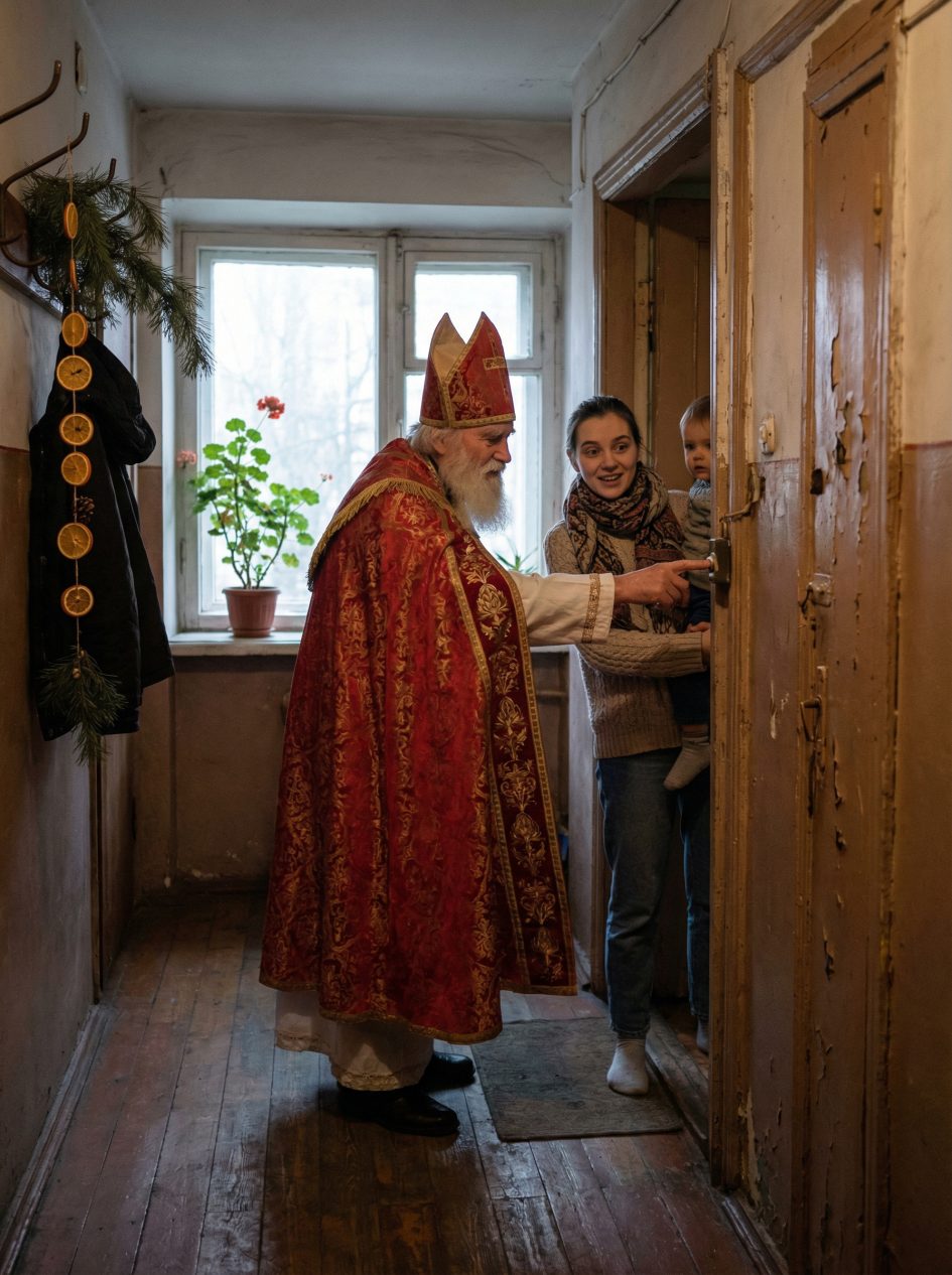 – Сергію, припини негайно! – ахнула мати Сергія. – До обов’язків Миколая не входить дарування подарунків батькам.
