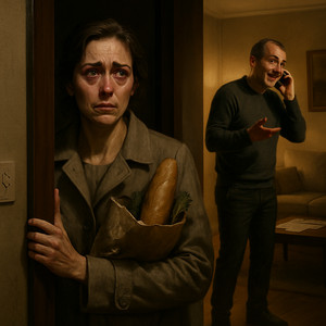 Повернувшись додому, вона зустріла незадоволеного чоловіка.