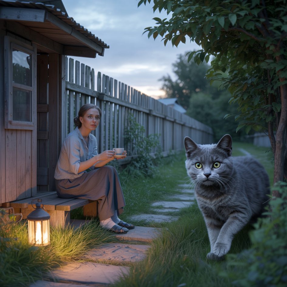 Але найбільшим подарунком долі стала кішка. Одного вечора Ольга сиділа на ганку з чашкою чаю, коли з лісу нечутно вийшла сіра кішка з зеленими очима. Обережно підійшла, понюхала, сіла на сходинку.