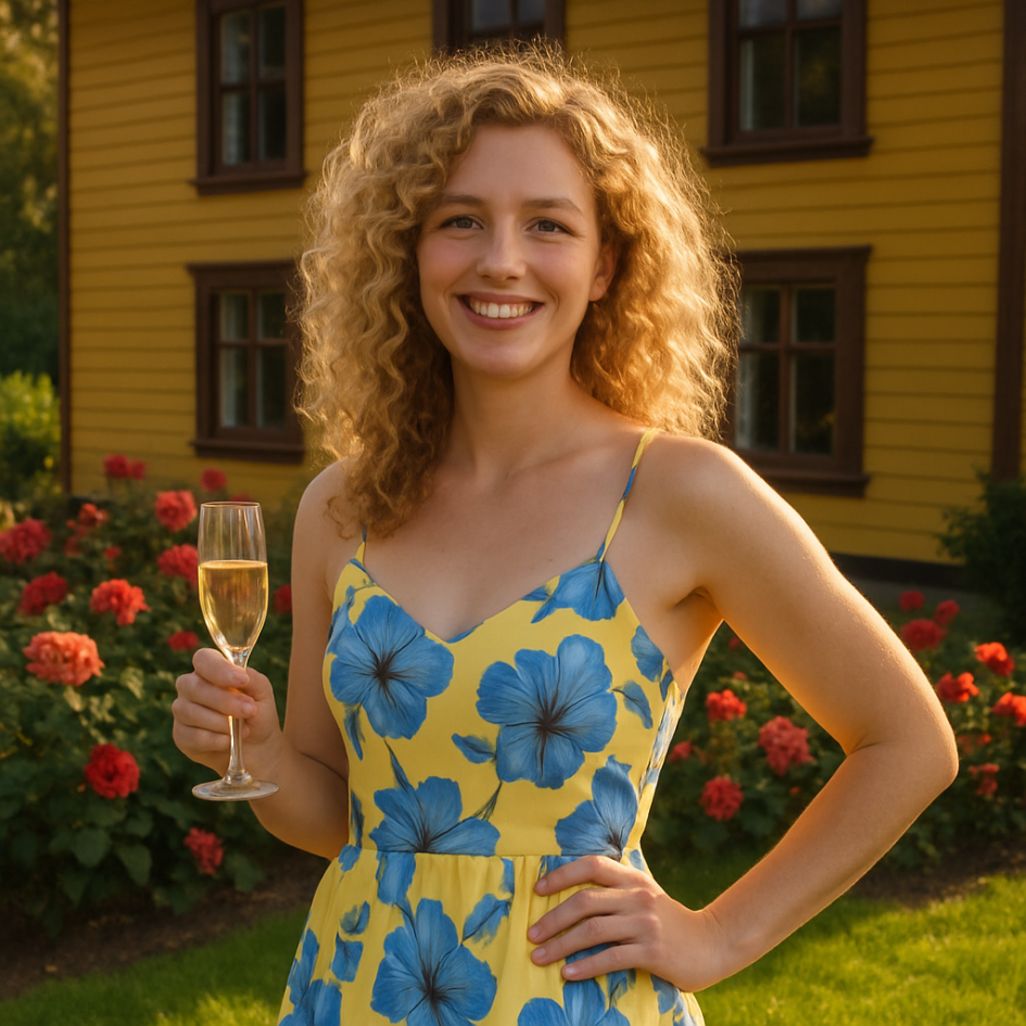 На знімку сестра стояла на ґанку бабусиної дачі з келихом ігристого, широко посміхаючись в об’єктив. Підпис під фото: «Дякую батькам за найкращий подарунок! Тепер у дітей буде свій куточок природи!
