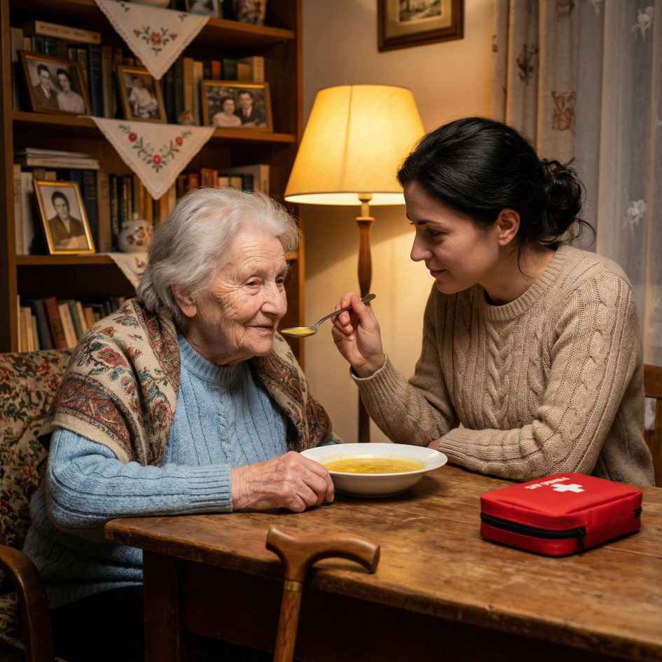 Насипавши старенькій супу, схопивши аптечку і тонометр, вона постукала до бабусі. Їй довго не відчиняли, і Катя вже подумала, що бабуся богу душу віддала, на радість рідні.