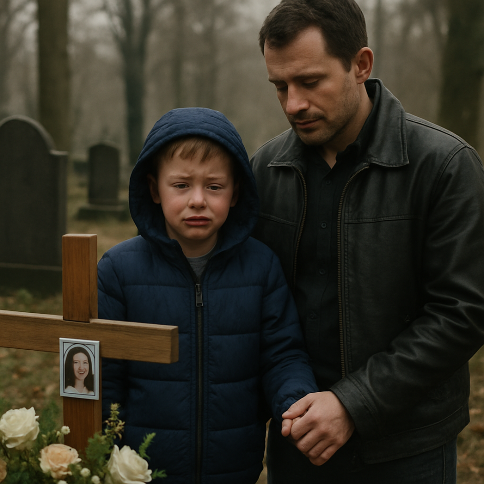 …Біля могили стояли двоє. Чоловік і маленький хлопчик. Ззаду стояли батьки Романа і його друзі.