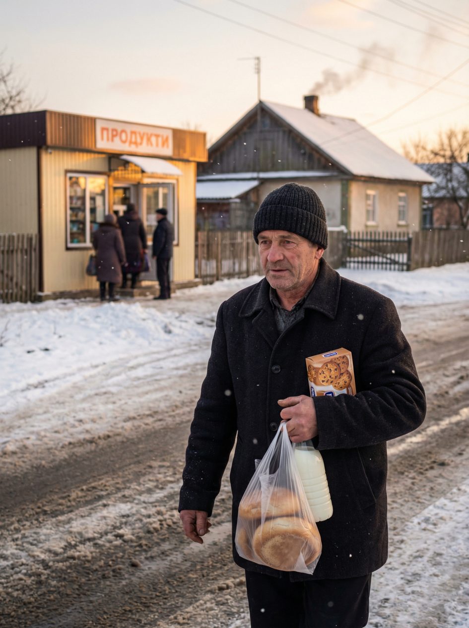 …Степан зайшов у магазин, купив молока, пару свіженьких батонів, печиво й пішов у гості до матері.