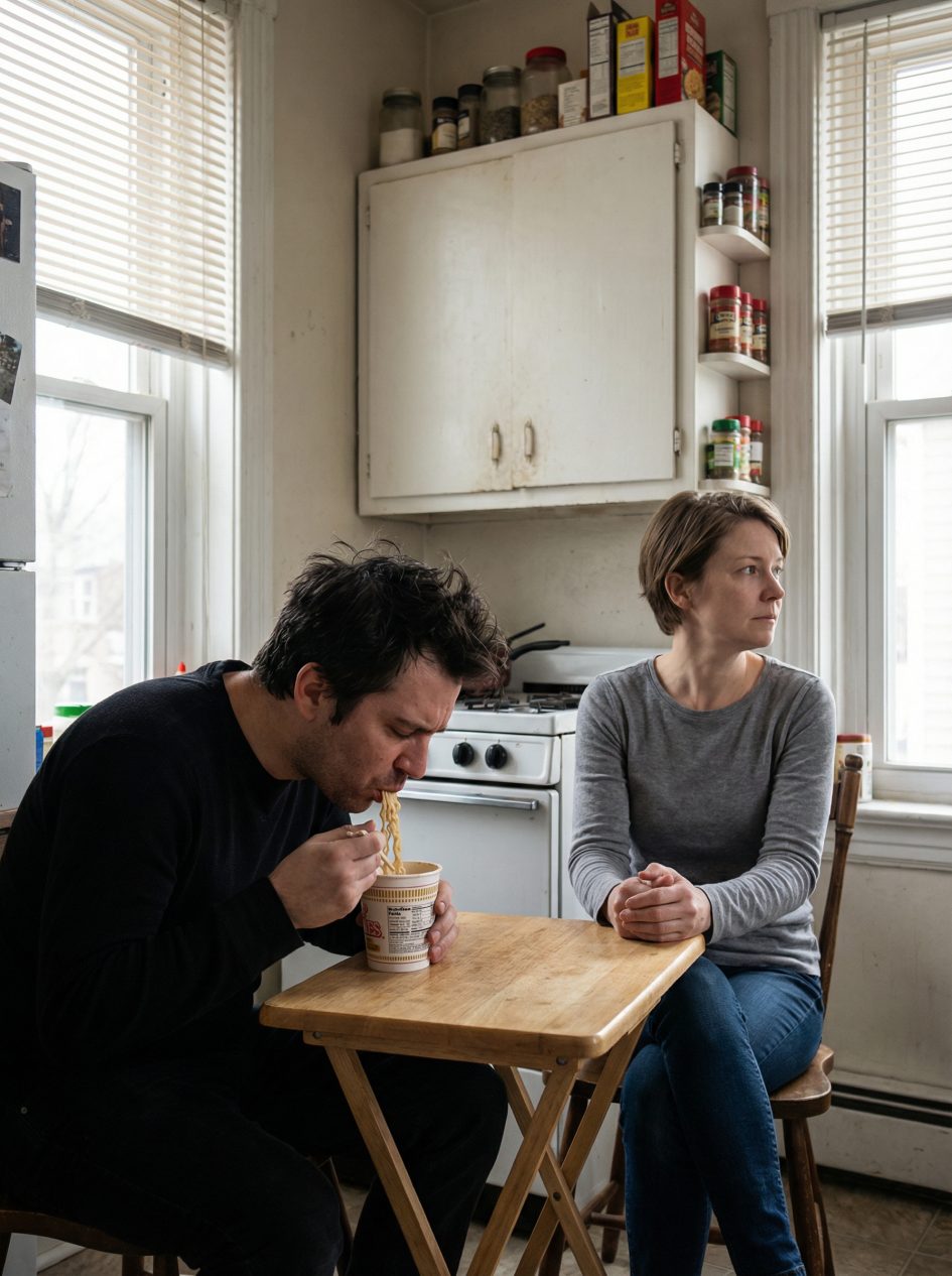 Антоніна сиділа за кухонним столом і дивилася, як чоловік поїдає чергову порцію запареної локшини. Їв він жадібно, неохайно, капаючи соусом на футболку.