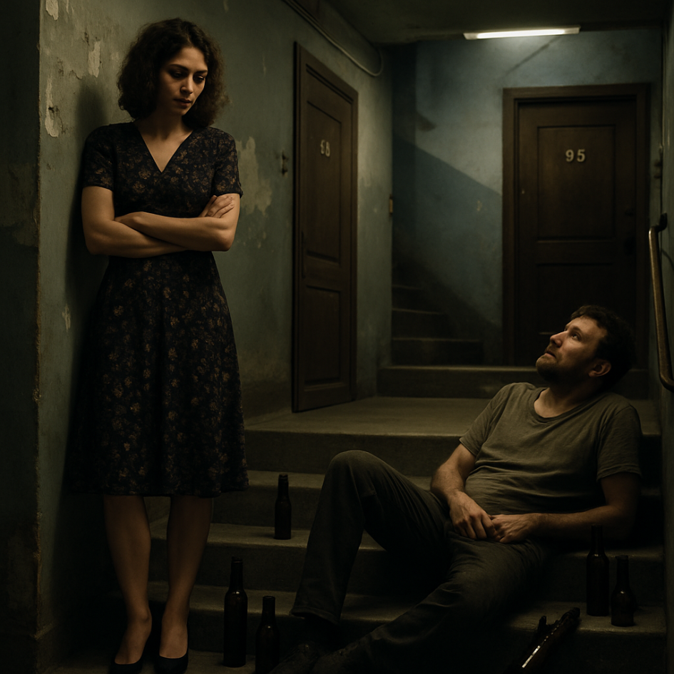 Вона з презирством подивилася на колишнього, вдала, що не впізнала, переступила через нього і зникла за дверима квартири.
