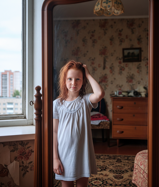 Аня пішла до дзеркала. На неї дивилась рудоволоса дівчина. Яскраво – руде волосся, змішане з веснянками та зеленими очима, створило унікальний образ який не з ким не переплутати.