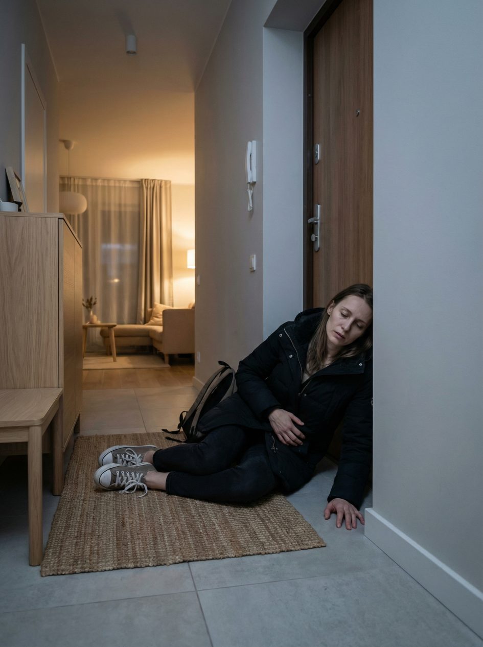 Ледь відкривши двері додому, жінка практично ввалилася в квартиру, а потім і зовсім осіла на підлогу.