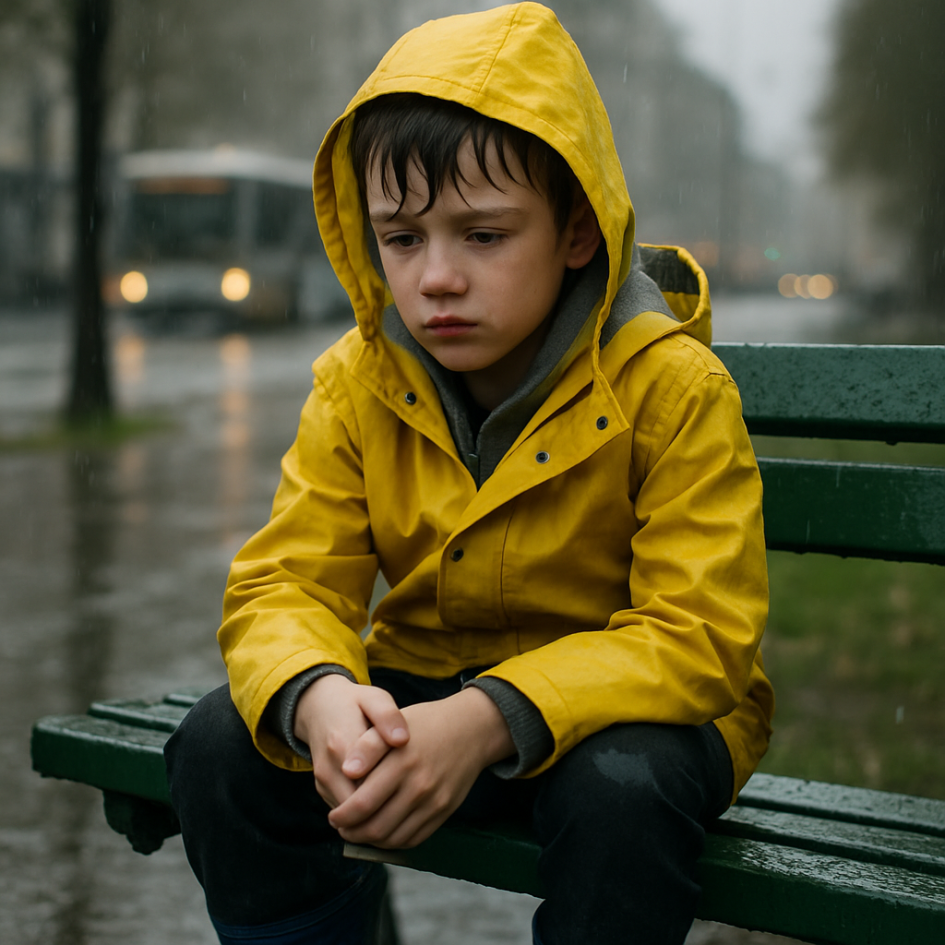 Зробивши кілька кроків тротуаром Маргарита здивовано зупинилася – на мокрій лавці сиділа маленька дівчинка і плакала. На ній була тоненька курточка і дівчинка мерзлякувато зіщулювалась від холоду, а по щоках перемішуючи з краплями дощу текли сльози.